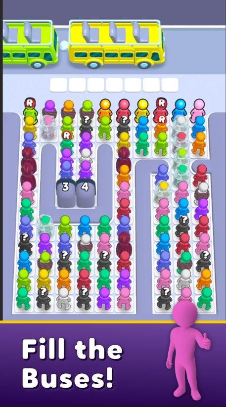 《Bus Jam》的玩法与《Seat Away》有一些相似之处,但这次不是让玩家排座位,而是将不同颜色的小人儿送上不同颜色的通勤巴士,以便所有人都能顺利上车。
