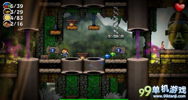 《峡谷跳跃》的游戏风格相当可爱,多元素的冒险风格,画面看起来丰富多彩,还有5个不同世界的探险,收集财宝、钻石,躲避机关、怪物,喜欢冒险的玩家千万不要错过,仅仅是各种跳跃的玩法也能让你爱不释手。