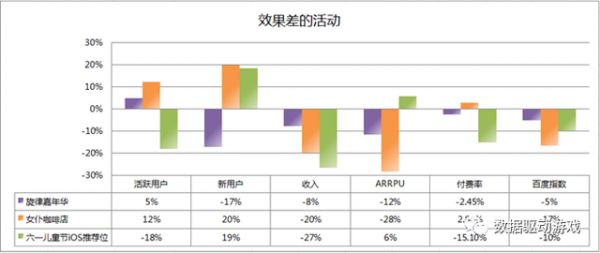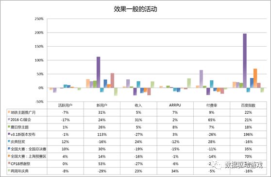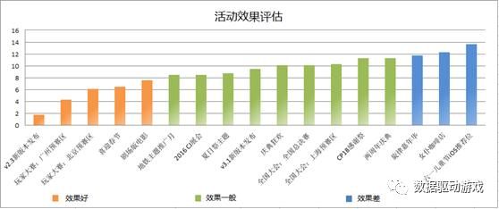 游戏活动,尤其是大型的线下活动需要花费动辄数十万上百万的推广费用,判断一个活动的好坏,就是要分析数据,这里主要指游戏收入和人数的数据分析。对于效果好的活动,可形成活动模板,作为长期定期进行的活动。对于没有效果的活动,进行改进后再推行,依然没有起色的,不再推进。