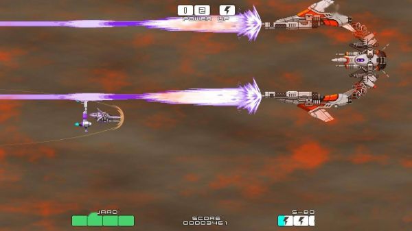 当然,收集子弹和激光能获取能量从而让我们利用这些能量给予自己的飞机额外的武装,从而拥有更强的火力,所以这款游戏归根结底还是鼓励玩家通过吸收这个创新的机制去杀敌的。游戏有较高的难度,普通玩家就玩最简单的难度就好,乐趣一样不会少的。