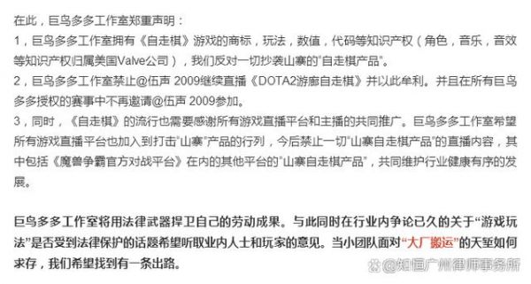 巨鸟多多工作室于2019年3月17日在微博发布《我们对所有“山寨抄袭”说不》一文,针对市面上的诸如09自走棋,魔兽自走棋,三国自走棋等“山寨游戏”表示控诉,希望捍卫自己关于“游戏玩法”的版权。游戏玩法是否存在版权这一话题又被广大网民进行讨论,随着我国版权保护体系建设及不断完善,实务中法院对于游戏玩法以及游戏本身的版权法律问题也有新的认定。本文希望从游戏玩法是否具有版权的问题铺开,分享笔者个人对游戏著作权侵权认定的理解。