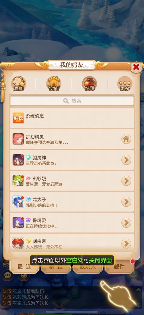 界面关闭:点击界面空白处即可关闭界面;