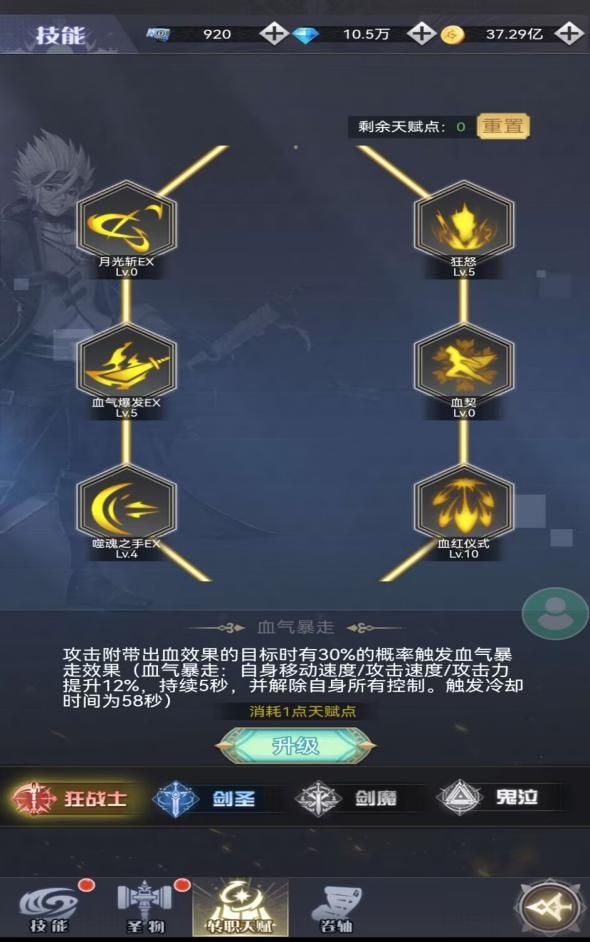 3.天赋升级(天赋跟角色转职挂钩,一觉一星一点天赋)