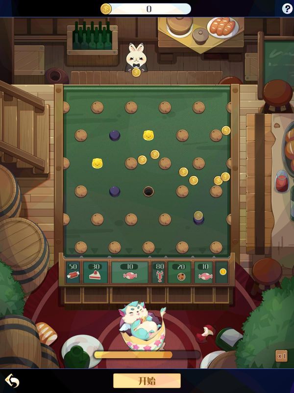全新玩法取消了各类繁杂的游戏机制,回归到了最简单的状态。玩家需要通过控制金币释放时机,让金币通过充满各类道具的沙盘区,最终掉落到食材区喂食小咕噜,当小咕噜进食度满时即可领取奖励哟~