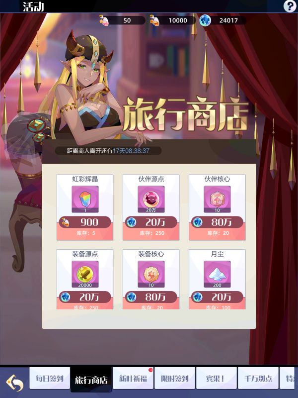 本次旅行商店将支持多种道具进行兑换,包括英雄源点、幻古星沙、橙色星沙等,本活动也将长期开放至国庆假期结束,不知道各位的存货够不够哇?