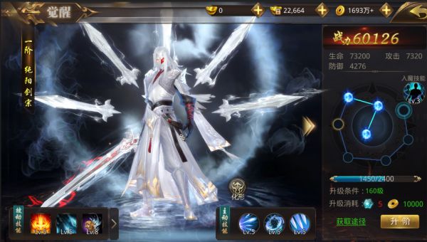 主要玩法:觉醒形象是可以消耗血菩提进行升阶的,每一阶都有不同的形象,每个形象有3个专属的主动技能和5个通用的被动技能,只有觉醒之后才可以使用这些技能,另外,通过觉醒进阶还可以给人物带来大量的属性加成,极大地增强自身的实力,可谓是颜值与实力并存!