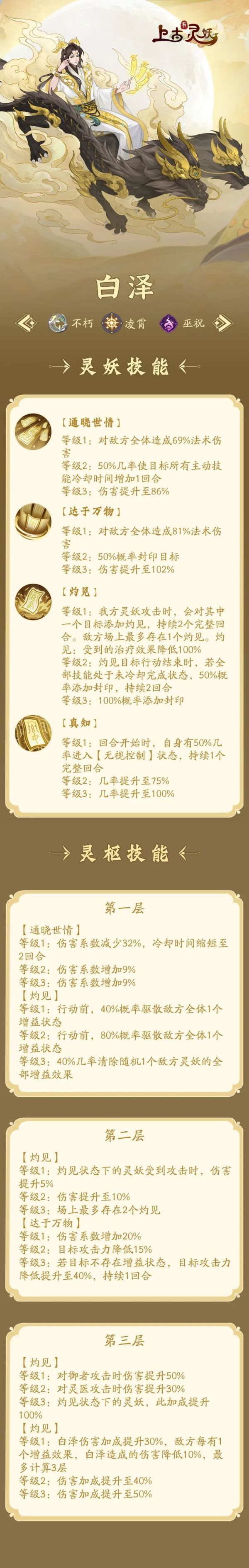 角色原型:白泽是中国神话传说中的瑞兽。通万物,晓百鬼,在人间君王有德时出现,能辟邪驱除妖祟。《山海经》云:“东望山有兽,名曰白泽,能言语。王者有德,明照幽远则至。”后世朝代中,常将白泽纹绣于旗、衣之上。形象一说为兽虎首朱发而有角,龙身。一说为龙首绿发戴角,四足为飞走状。