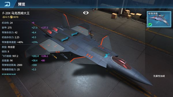 F-20X马克西姆大王采用了单座、双发、全动双垂尾、DSI鼓包式进气道、上反鸭翼带尖拱边条的鸭式气动布局,拥有夺取制空权和攻击地面目标等多种功能。