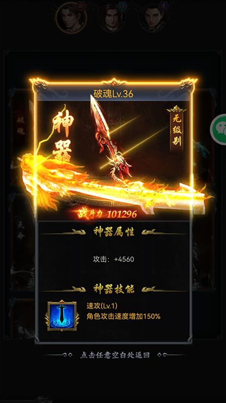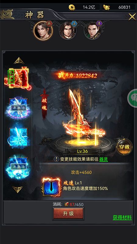 3.神器激活后,可以升级提升神器属性