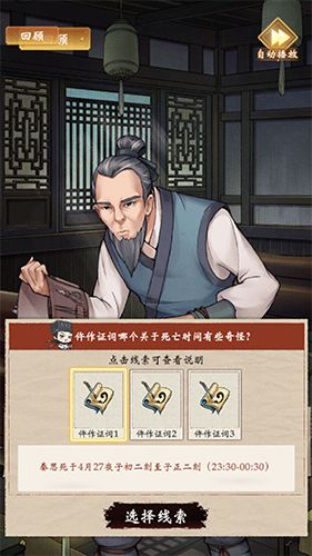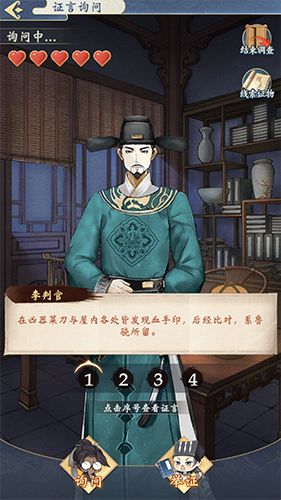 《洗冤录》是以单个案件独立的,结合问答、搜证、线索梳理的解谜玩法。每个案件均会假定一位“犯人”,大人们需要做的事情就是结合该“犯人”提供的证词、结合自身对现场搜查的情况进行串联线索,找到案件真正的凶手、为这名“犯人”洗刷冤屈。