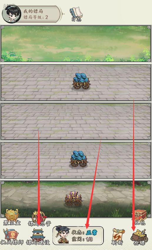 解锁镖局之后就可以根据自身需要进行不同资源的获取,还可以抢夺别人的,建议玩家前期先提高镖师人数和镖局建设