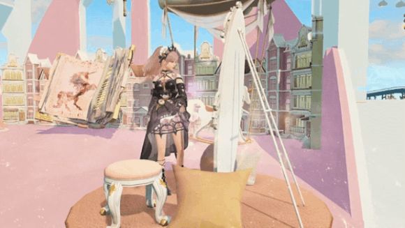 躺上柔软的粉色帐幕床