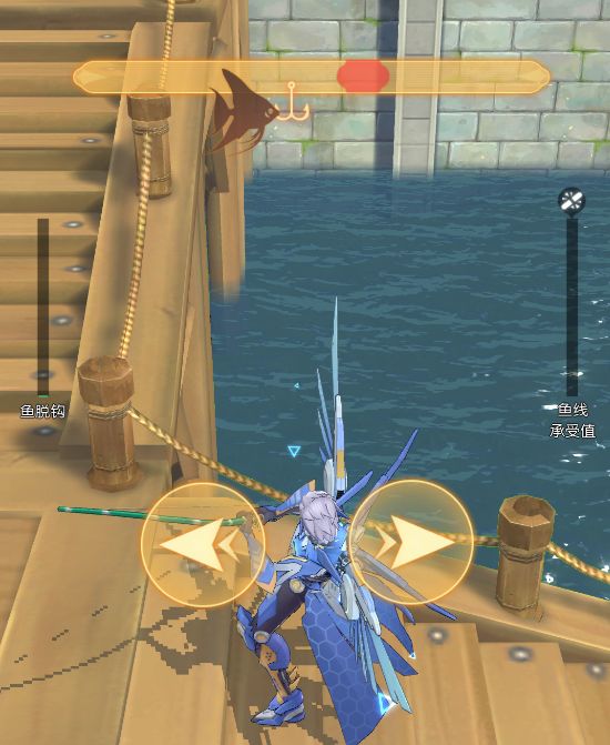 控制下方左右方向键,让鱼钩保持在上方红色区域内,此时需要注意左边鱼脱钩值,到达顶端鱼就会跑掉,而右边的鱼线承受值,到达最顶端不仅鱼会跑掉鱼线也会断掉,建议前去钓鱼的冒险者多备几个哟