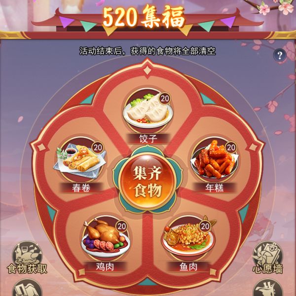 集齐五种食物,即可赢取全服大奖,元宝、招募令等你来拿!