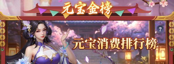 元宝金榜开启!消耗的元宝几率至金榜中,参与冲榜活动,根据数量进行排名,可获得对应的元宝冲榜专属奖励