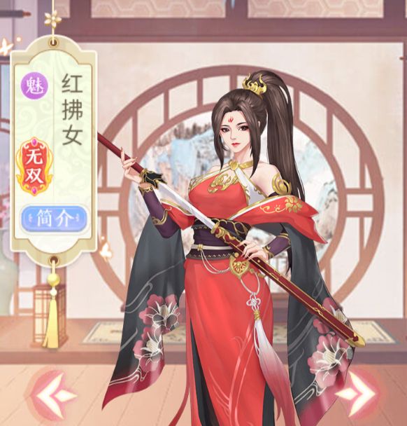 3.红拂女[魅]虽位居四大列三·实力也在诗仙李白之上·同有技能·实力偏低才一才二·作用也极大·配备总系珍宝·做备选也可