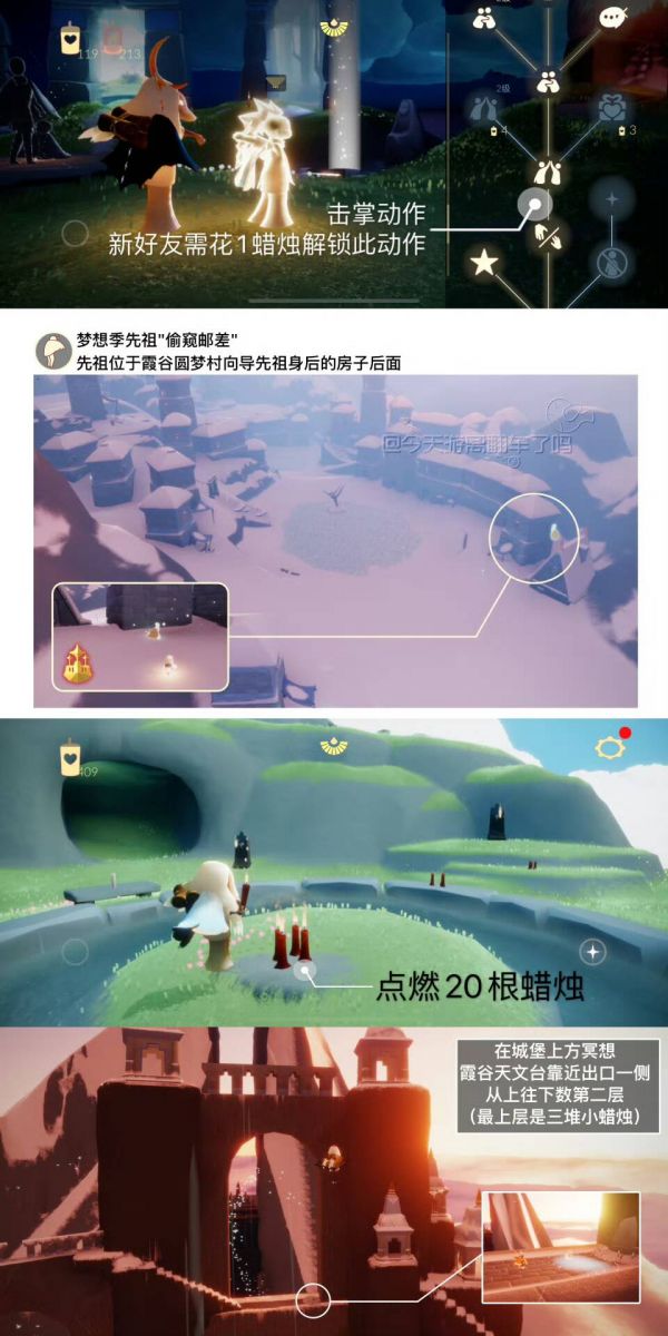 《光遇》游戏中每天的每日任务及大蜡烛的位置都不相同,玩家完成每日任务及收集大蜡烛都可以得到丰厚的兑换奖励,奖励可以用于兑换各种动作及道具,不过很多小伙伴不知道每日任务怎么做,又懒得自己去找大蜡烛的位置,我们汇总了每日任务的完成攻略以及蜡烛位置,一起来看看吧!