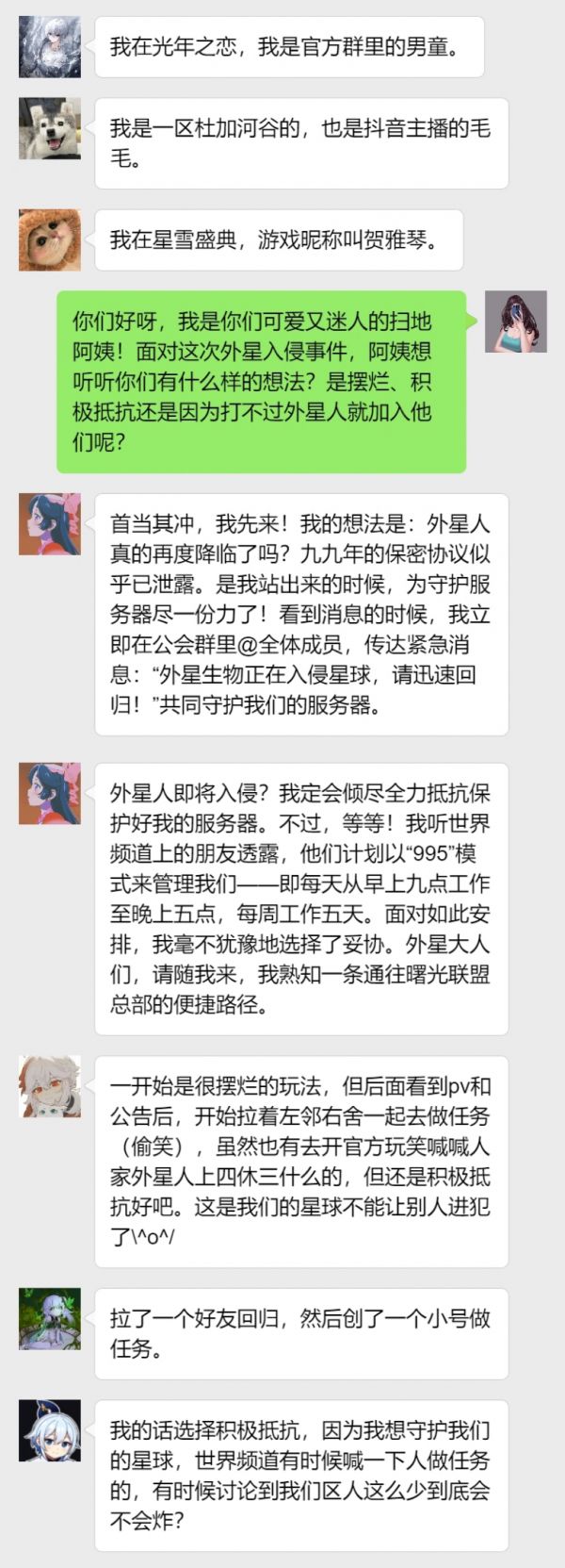 幸存者们好呀,扫地阿姨请来的代播小姐姐是不是人美声甜呀?咱虽然是个铝孩纸,但也觉得她的声音很甜捏~在看直播时,评论区有不少幸存者问是不是阿姨直播,哎呀可惜了不是( ‘-ωก̀ )就允许我偷一次懒吧!既然直播阿姨没上场,那采访就交给我吧!星球记者身份已上线,接下来请欣赏阿姨的表演!