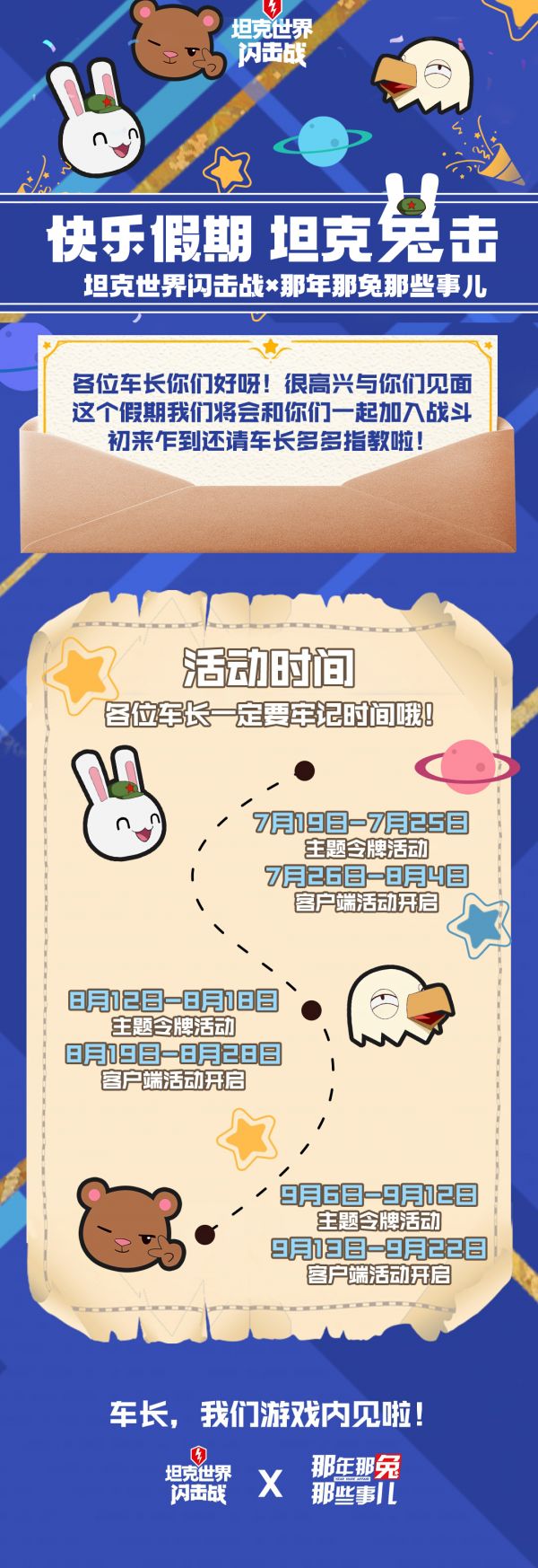 原来是那兔、鹰酱和毛熊三巨头集结,为的就是赴车长们的今夏之约,相伴开启新的火力篇章!