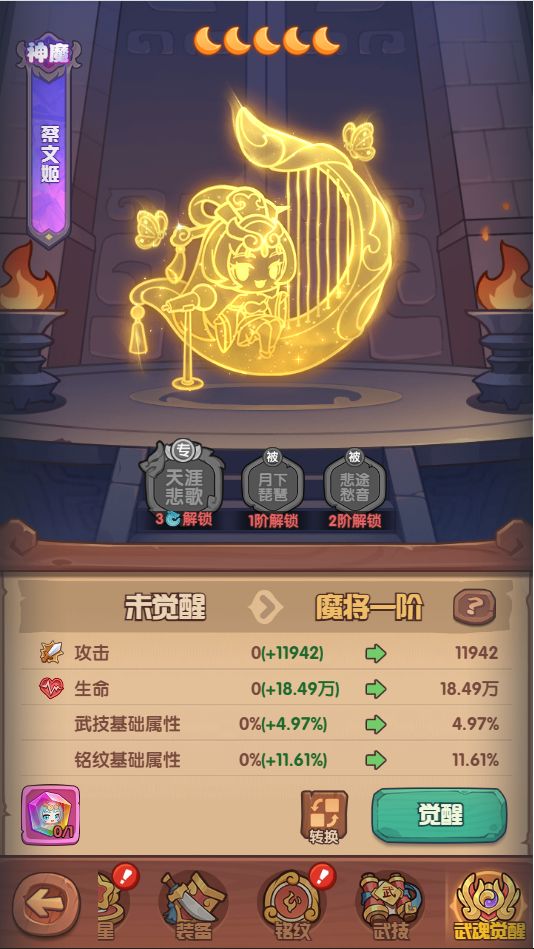 3.每次觉醒升阶都能解锁或强化一个觉醒技能,每个武将都有自己的专属的觉醒技能。