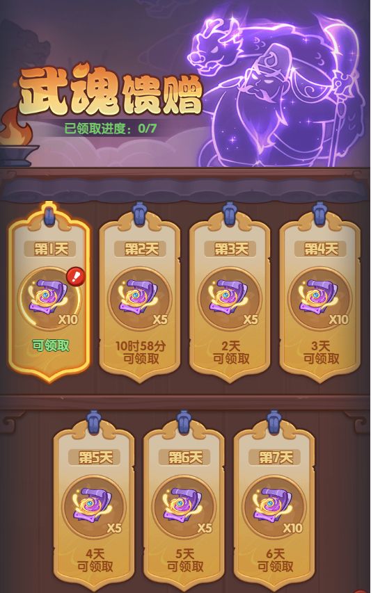 活动开启后,只需登录7天,即可获取50张武魂召唤卷