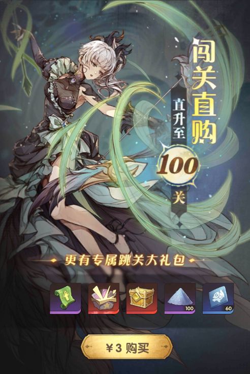 超值优惠礼包建议购买“直升百关”礼包,直升100关,没有前期繁琐的新手教程,更快的体验到游戏的各种玩法与有趣的活动。