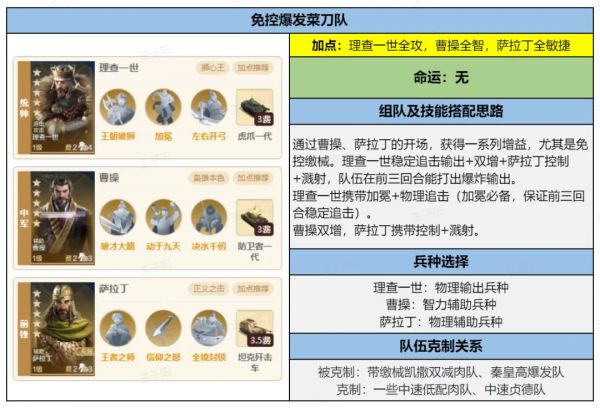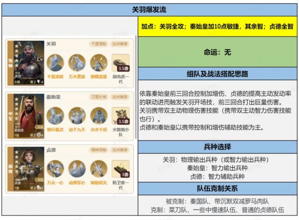 适配体系:功能性增伤前锋,适合一些前三回合的爆发输出队,如各类爆发菜刀、秦始皇法刀队伍