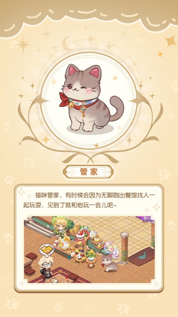 1、当亲爱的管家猫咪头上出现手套图标时,要陪他好好玩耍呀!
