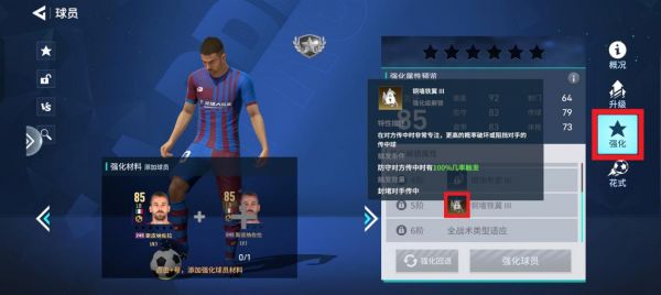 如果您有多个相同球员,那么您在可以消耗这些球员来强化,将其升星。在球员升星后会解锁相应的特性