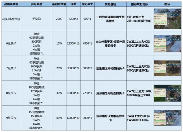 此处码头与关卡可作为一类,以下分别解析各类战略点具体数值,以供参考,分别有以下数据: