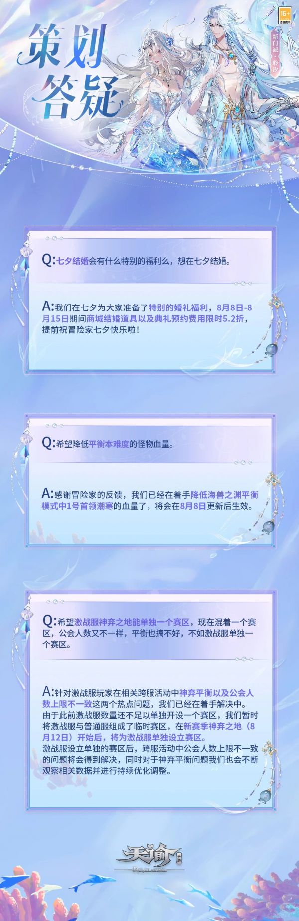 1、七夕福利来啦!8月8日-8月15日期间商城结婚道具以及典礼预约费用限时5.2折。