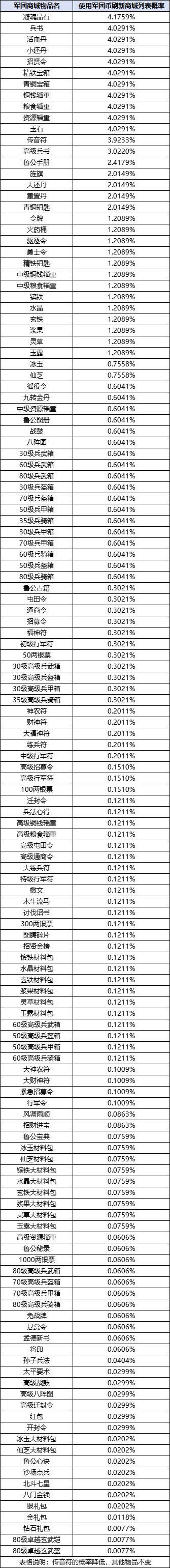 ⑤ 军团商城物品列表刷新概率,请见官网、专区、玩家群、公众号对应公告。