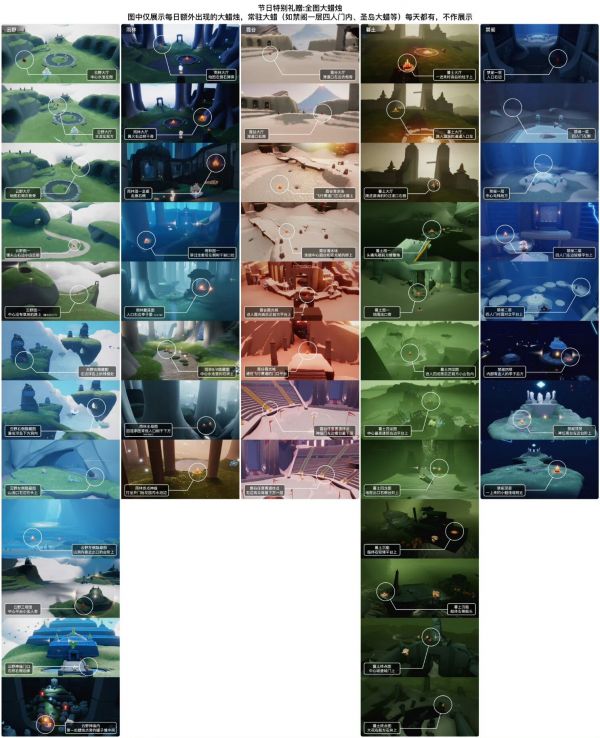《光遇》游戏中每天的每日任务及大蜡烛的位置都不相同,玩家完成每日任务及收集大蜡烛都可以得到丰厚的兑换奖励,奖励可以用于兑换各种动作及道具,不过很多小伙伴不知道每日任务怎么做,又懒得自己去找大蜡烛的位置,我们汇总了每日任务的完成攻略以及蜡烛位置,一起来看看吧!