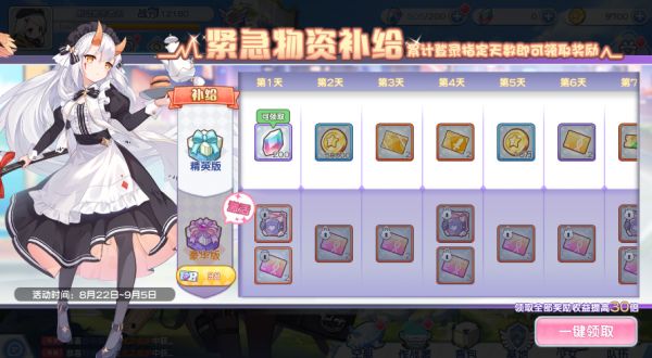 亲爱的指挥官,全新登录补给活动即将来临,活动期间连续登录即可领取相应奖励,激活豪华补给更可额外获取稀有道具奖励~