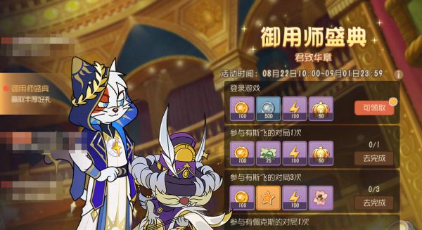 御用师盛典即将来袭,宫廷内的御用师们将会向大家展现他们惊人的技艺哟。活动期间,完成任务即可获得星星、金币、邮票、人气礼物等精彩好礼~