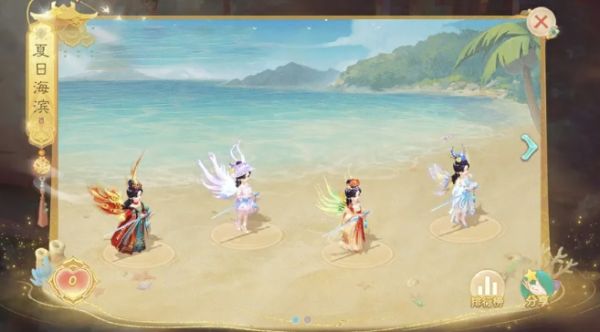 珍宝等级一级即可解锁外观展厅,少侠可以挑选自己最喜爱的四套衣服进行展示,还能解锁多个场景让你有更好的搭配思路哦!