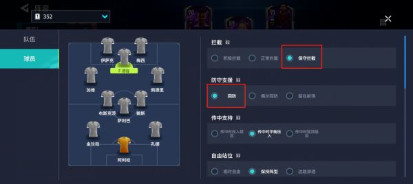 左侧栏点击球员,进入球员专属战术设置,将球员的拦截策略设置为保守拦截,让球员更专注于保持自己的防守位置,增强防线的稳定性。