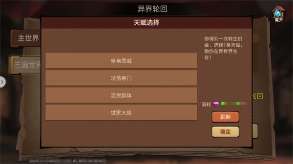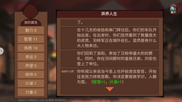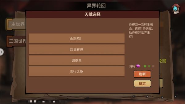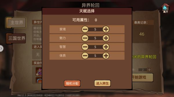 每一次的轮回,领主大人都只有一次生命,其中的每一次选择或决定都至关重要并且会影响后续的剧情发展。在主世界的剧情里,领主大人可以像个大老板一样自由选择分配自己的天赋与属性点,智慧、家境、魅力、体质任您选择,但是请注意,无论领主大人怎样分配属性,单项属性都不可以为0的。咱就是说,无论领主大人是想开局当有天资聪慧的学霸、四肢发达的猛男亦或者是选择All in家境让自己生活很滋润的富二代,全都看领主的心情。