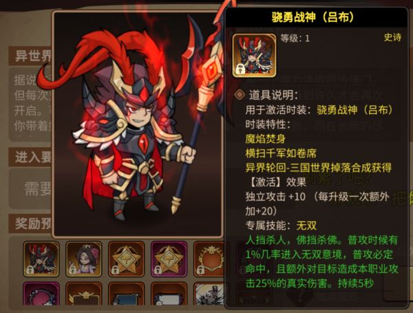 除了有趣的文字冒险以外,“异界轮回”中还有丰厚的奖励,等着领主大人去获取,其中包括了精美的貂蝉、吕布以及学院时装、称号、头像与头像框,以及大量的强化石与精灵升级资源。