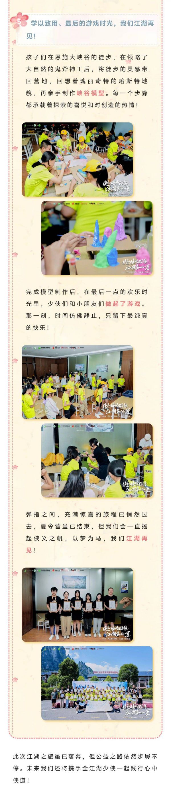 侠者之道,总是少年行处。公益之路,此间江湖一直在行动。我们与全体少侠携手湖北文旅、恩施恩旅集团、恩施大峡谷景区、中华思源工程基金会·新浪扬帆公益基金、湖北慈善思源爱心基金、扬帆生活一同开展的暑期夏令营活动落下帷幕啦~