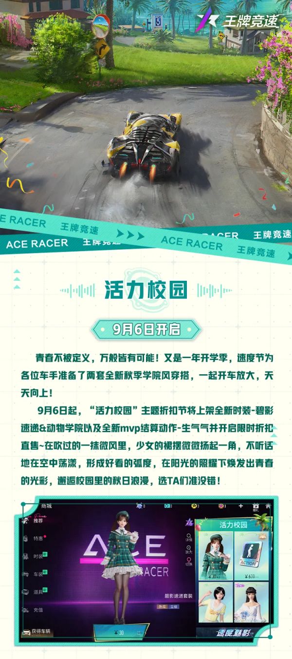 上学没动力?王牌竞速来帮你~“真·开放”的王牌时装又发力啦——JK学姐&校园女神,哪款才是你的爱,跟着西理一起重返学生时代,绽放青春活力!