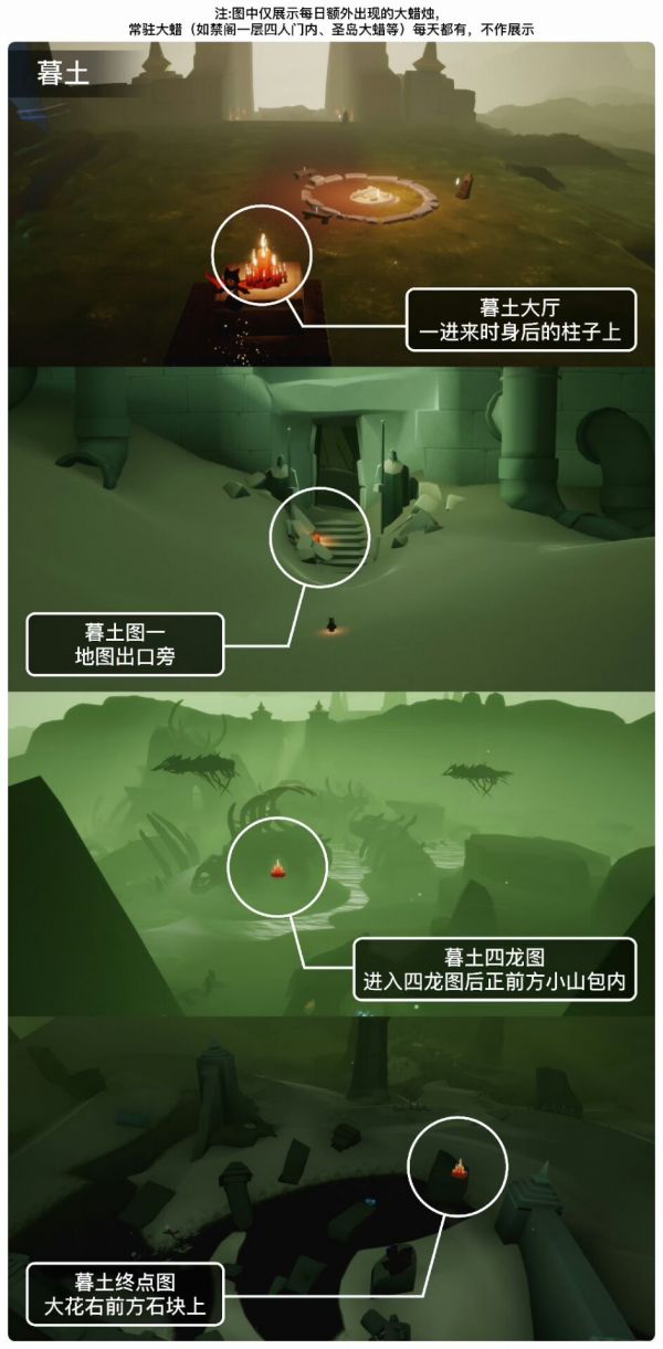 《光遇》游戏中每天的每日任务及大蜡烛的位置都不相同,玩家完成每日任务及收集大蜡烛都可以得到丰厚的兑换奖励,奖励可以用于兑换各种动作及道具,不过很多小伙伴不知道每日任务怎么做,又懒得自己去找大蜡烛的位置,我们汇总了每日任务的完成攻略以及蜡烛位置,一起来看看吧!