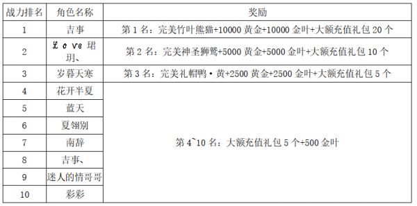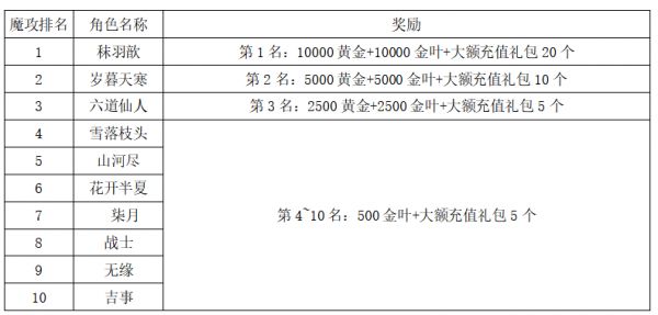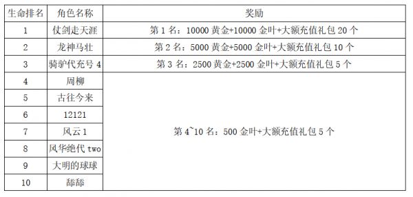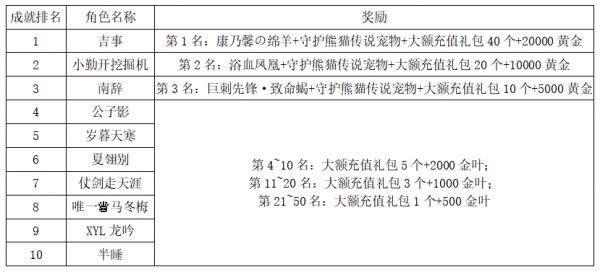 注:以上活动排名均以服务器时间为准。新区排行榜活动如发现存在违反游戏相关规定使用游戏外的辅助工具进行作弊将取消获奖资格。