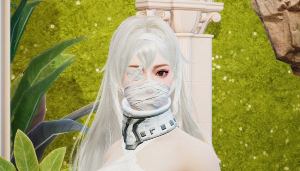 从特制的绷带面饰中露出