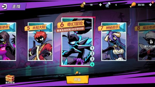 7、闯关技巧:前六关基本没什么难度,第六关后boss伤害会变高,多给角色以及装备升级即可。