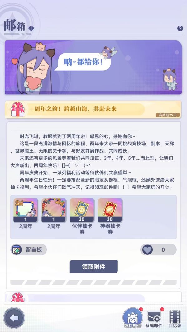 周年庆啦,当然要给大家开心一刻!邮件奖励更丰富啦(*´∀`)~♥