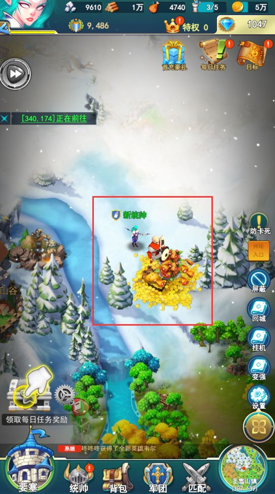 当统帅们游玩一定时间后,可能会缺乏要塞内用于升级建筑的资源,这时不妨在大世界探索一番。如果找到宝箱叛军,可消耗一定的行动力进行讨伐,讨伐成功后除了获得大量基础资源外,还有几率获取抽卡券、钻石等珍稀资源。