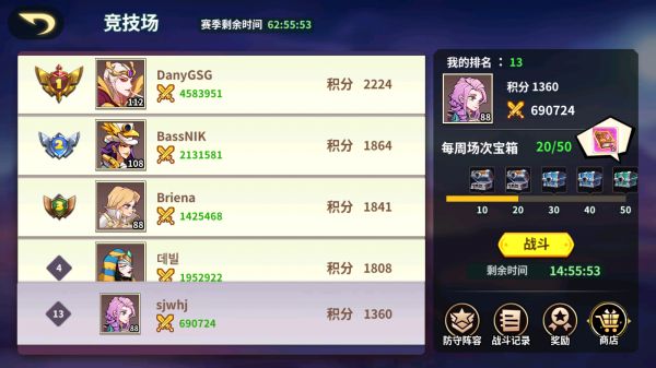 参与竞技场战斗会消耗1枚竞技凭证,挑战胜利获得积分,失败扣除积分,所有玩家按照积分进行排名。每日0点通过邮件发放排名奖励。荣耀挑战每周为一个赛季,赛季结束按照排名发放奖励。
