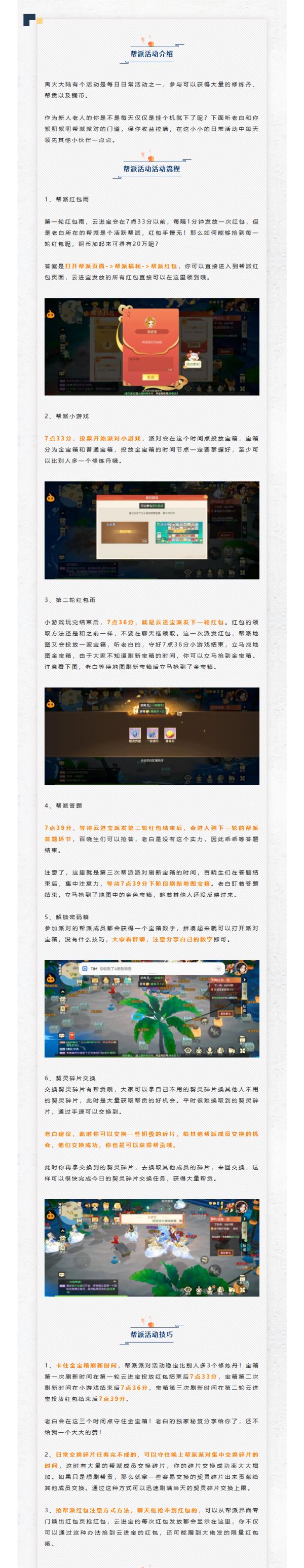 离火大陆有个活动是每日日常活动之一,参与可以获得大量的修炼丹、帮贡以及铜币。作为新人老人的你是不是每天仅仅是挂个机就下了呢?下面听老白和你絮叨絮叨帮派派对的门道,保你收益拉满,在这小小的日常活动中每天领先其他小伙伴一点点。