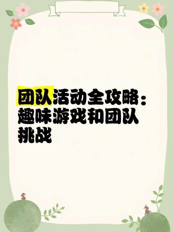 无论是室内还是室外,我们都有适合的大型团队活动游戏!这些活动不仅能提高团队的默契度,还能增加凝聚力。以下是我们的活动全攻略: